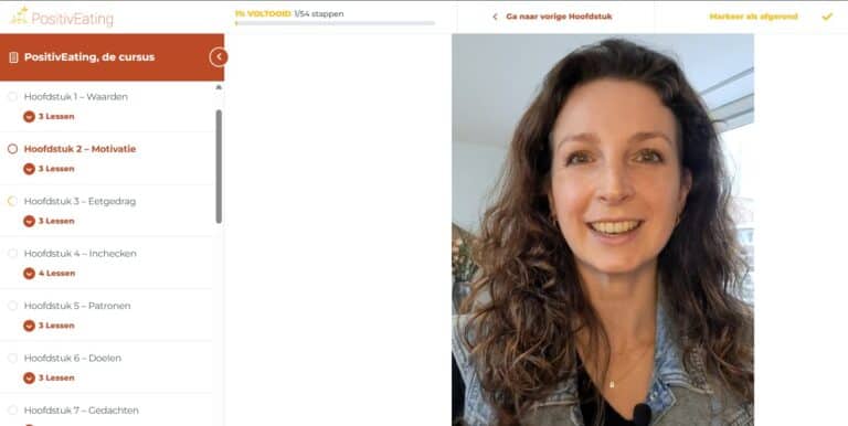 Het voelde alsof ik aan de hand werd meegenomen. De variatie in de cursus is perfect! Elke module heeft verschillende elementen – filmpjes, teksten, opdrachten en zelfs voice memo’s – waardoor het echt afwisselend en leerzaam is. Voor iedereen die meer inzicht wil krijgen in zijn eetgedrag en met een positieve mindset aan een betere leefstijl wil werken, kan ik deze cursus echt aanraden!